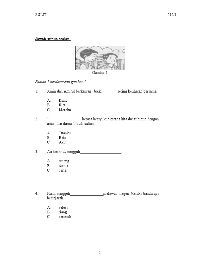 Soalan Bm Kertas 1 Kssr Tahun 6