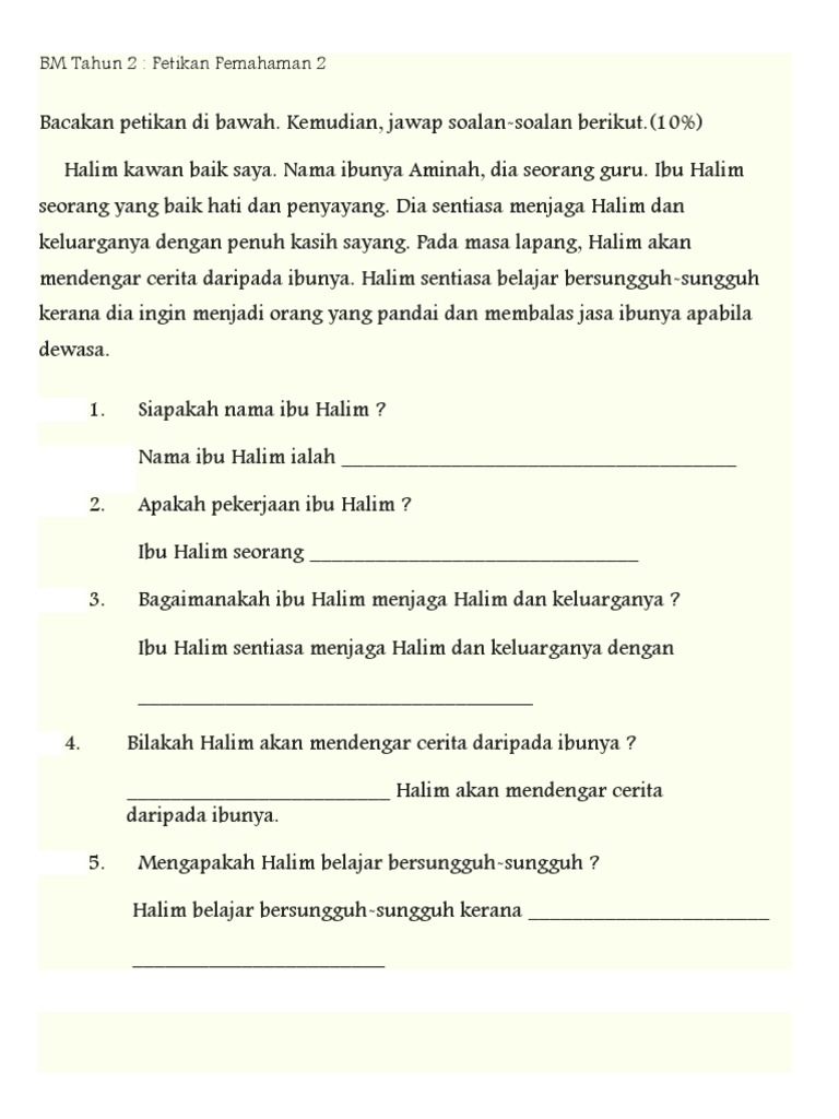 Latihan Pemahaman Tahun 2 Sk Pdf